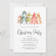 Elegante convite de festas do escritório de férias corporativo com um abstrato de cor d'água de pinheiros em verde-mudo, vermelho, ouro e laranja, "Festa de Natal" em um roteiro moderno para na moda, e seu nome comercial e detalhes de festas em uma simples tipografia.