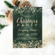 Elegante cor d'água verde da floresta com um falso brilho de ouro cólico convite de festas de Natal corporativo e um confete de brilho de ouro cônico. Um convite simples e chique.