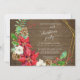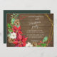 Formato horizontal 5x7 | O convite de festas de celebração da festa de inverno, na Rússia, mas elegante, apresenta um novo fundo de madeira de celeiro que dispara o texto branco. Ferida Geométrica com design floral em forma de crescente. Flores de poinsettia vermelha misturadas com rosas selvagens brancos, Holly com bagas, Mistletoe, cones de pínus e galhos de folha. Copyright, Audrey Jeanne Roberts.