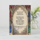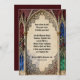 Arcos góticos, com detalhes florais e locais, em um fundo vermelho, azul e verde fazem um belo convite para festas de férias. Não tão orientada para o Natal que não poderia ser usada para outras celebrações ao longo do ano.