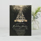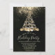 Árvore de Natal elegante com presentes e confete sobre fundo preto. Estes belos convites de Natal são perfeitos para convites de festas de janto de Natal, convites para troca de presentes de Natal, angariadores de fundos de Natal, convites para bolas de férias e outros eventos realizados durante o mês de dezembro. Use apenas os campos modelo para adicionar suas próprias informações de evento.