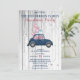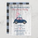 Convide amigos e família para se reunirem para as festas com este lindo Convite de festas de Natal. Este convite para a festa de Natal apresenta um fundo de madeira de cinza rústica com um carro azul giro tocado com uma árvore de Natal rosa e presentes. A parte de trás do cartão de Natal tem um padrão de xadrez azul. Personalize com todas as informações de sua festa.