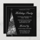 Um convite para festas modernas, com uma árvore de Natal prateada, com um padrão de espiral elegante sobre fundo preto. Formal e elegante. Perfeito para uma festa de feriado corporativo, festa de feriado comercial, festa de férias da empresa e muito mais! Personalize facilmente o seu evento especial. Designs são ilustrações/gráficos impressos em formato plano - NÃO É A FOLHA DE PRATA REAL.