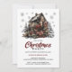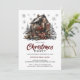 Convide os seus amigos e familiares para a sua celebração de Natal este ano com este convite que apresenta uma cabana rustica num dia de inverno nevado.