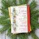 Convite de festas de Natal colorido e elegante, com uma corda de terra verde-velha subindo pelo lado esquerdo que é melhorada com casas de pão-de-gengibre e flocos de neve. Todo texto é um texto marcador de posição (atualmente em uma cor vermelha e verde rica) e tão fácil de atualizar. Uma borda vermelha arrojada corre pelo lado direito para um olhar dramático.