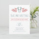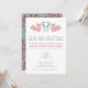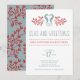 Convite de festas de Natal costeiro personalizado. Ele apresenta um coral de aquarela e design de cavalo na frente com os detalhes de sua festa de férias. O cartão se reverte para um padrão de coral marinho em vermelho sobre um fundo azul em pó. O convite perfeito para sua festa de feriado costeiro, janto de ensaio de casamento no inverno de praia, chá de panela de Natal, chá de fraldas, festa de companhia ou recepção. Apresenta as palavras "Seas e Saudações". Para ver envelopes e designs correspondentes, visite o VG Invites no Zazzle