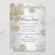 Convite para o Feriado Branco Dourado e Prateado. Design de floco de neve de pérolas de prata. Por favor, note: todas as imagens planas, elas não têm joias reais!