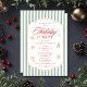 As Elegantes Convidações de Férias da Companhia de Natal da Elegante contêm elementos simples e vermelhos de Natal em um fundo listrado verde e branco com o texto "Festa de Férias" em elegante tipografia de script de caligrafia vermelha. Na moda, tendências e chic para o seu Partido de Feriados corporativo. Criado pelo Evco Studio www.zazzle.com/store/evcostudio