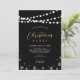 Comemore a temporada com este convite de festas modernas. Este design apresenta texto na moda dourado, flocos de neve com textura dourada e luzes de cordas. Você pode adicionar seu logotipo, personalizar o texto, a fonte e as cores. Perfeito para uma festa de natal de uma empresa de temas de ouro e preto, ou festa de feriado empresarial.