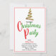 Este convite de festas de Natal moderno apresenta três camadas de ouro falso, vermelho e abstrato de fita verde, design de árvore de Natal com estrelas à frente e atrás. É enquadrado por brilho vermelho e dourado falso na frente e vermelho no verso. Preencha os campos de modelo ou remova as informações da sua parte.
