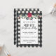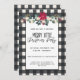 Feliz de Xadrez de Buffalo preto e Branco Pequeno Convite de festas de Natal com florais de fazendas, luzes de cordas estreladas e bonito letras modernas. Perfeito para a sua Feliz Festa de Natal! Será parte de uma coleção e estará disponível para comemorações virtuais de Natal. Se precisar de assistência para personalizar o seu Convite de festas de Natal, não hesite em contactar por correio eletrônico. primdesigner@gmail.com.