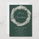 Elegante Convite de festas de Natal Floral Verde e Branco Convide seus amigos e família para sua festa de Natal anual com este convite elegante e sofisticado. Colocada sobre um fundo verde profundo, a design apresenta uma bela coroa floral branca rodeando as palavras "Feliz Natal". Os detalhes do evento são claramente apresentados abaixo, permitindo que os convidados marquem facilmente seus calendários. A combinação dos intrincados detalhes da coroa e a tipografia quic assegura esse convite de destaque, capturando o espírito festivo enquanto mantém um senso de refinamento.