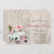 Carro azul com pinheiro sobre fundo de madeira. Estes belos convites de Natal são perfeitos para convites de festas de janto de Natal, convites para troca de presentes de Natal, angariadores de fundos de Natal, convites para bolas de férias e outros eventos realizados durante o mês de dezembro. Use apenas os campos modelo para adicionar suas próprias informações de evento.
