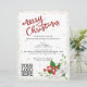 Este elegante Convite de festas de Natal Merry sobre White, da Companhia/Empregada, apresenta um roteiro escrito à mão Feliz Natal no vermelho, belo ouro esboçado flor branca, bagas vermelhas e botânicos verdes. Frames sutis de neve e flocos de neve aleatórios adicionam um toque de inverno a este elegante Convite de Natal. Design para a festa de Natal da sua empresa, adicione o logotipo da empresa em frente e atrás do convite de festas de Natal. Feliz Natal!