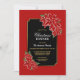 Um convite de festas de janto de Natal preto, dourado e vermelho, com poinsetos vermelhos e brancos vibrantes. Adequado para comemorações de Natal de família e de negócios.
