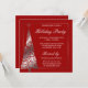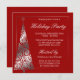 Um convite para festas modernas, com uma árvore de Natal prateada, com um padrão de espiral elegante sobre fundo vermelho. Formal e elegante. Perfeito para uma festa de feriado corporativo, festa de feriado comercial, festa de férias da empresa e muito mais! Personalize facilmente o seu evento especial. Designs são ilustrações/gráficos impressos em formato plano - NÃO É A FOLHA DE PRATA REAL.