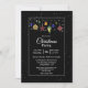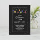 Uma noite estrelada negra moderna fez fronteira com o convite de festas de Natal, com bolhas e estrelas coloridas de Natal. Adequado para eventos familiares ou corporativos.