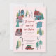 Convide convidados para a sua festa de Natal em estilo com a nossa moderna e festiva vila nórdica de esqui nórdico cor-de-natal, acolhedora, com esquiador de pessoas esqui e infantários inverno cena de inverno para Natal Feriado na natureza com convite para neve branca. Arte original de Caroline Bonne Müller