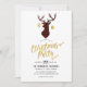 Convite de festas de natal russo com tipografia de escrita manual com um padrão de xadrez de búfalos e veados personalizáveis para suas especificidades de eventos.