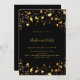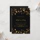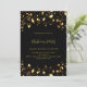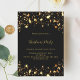 Um convite para uma festa de Natal. Fundo preto clássico. Decorado com estrelas ouros. Personalize e adicione os detalhes.