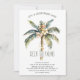 Transforme suas celebrações de feriado com nosso espantoso convés, o Convite de festas de Palms Christmas Luau. Esta design de palmeira aquarela enfeitada com luzes cintilantes, belos bolinhos, e flores de hibisco captam o espírito festivo sem comprometer a vibração das costas de um Natal quente ou de uma festa inesquecível de 'Natal em julho'.