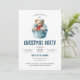Convite de festas de Natal bonito com uma ilustração cupcake azul e um urso com flocos de neve. Personalize-o com os detalhes do seu partido e as informações de RSVP.
