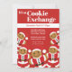 Um convite para festas de troca de biscoitos divertidos com um esquema de cor vermelha e branca que apresenta cinco Santas, sorridentes, pão de gengibre.