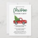 Script Watercolor Vintage Red Truck com Árvore de Natal - Convite de festas de Janto de Natal - Script Verde, Fundo Verde