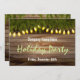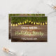 Conselho de celeiro russo, galhos de pínus e luzes de cordas embelezam este convite de festas para as festividades de Natal da sua empresa. Cartão correspondente de volta. Os textos em frente e verso estão prontos para personalizar com suas informações.