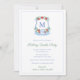 Design de Convite de festas de Natal clássico, com uma crista azul-aquarela e branca, com bagas vermelhas e poinsettia. No verso está um tartã acolhedor/xadrez de cores que coordenam com a coroa. Eu defini a modelo para um Festa de Bebidas Feriadas, mas todos os campos de texto são completamente personalizáveis para suas necessidades. Os elementos da coroa foram originalmente pintados à mão por mim em aquarelas a 100% de papel aquoso de algodão e depois digitalizados em formato digital.