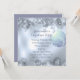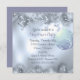 Este é um convite elegante para festas de férias, com fita prateada, estrelas e grampos de pinho no topo e no fundo. Um bolbo de árvore de Natal pendurado no lado direito. Há muito espaço para o seu texto personalizado contra um fundo iluminado. A parte de trás do convite é azul prateado sólido correspondente. Festivo e bonito!