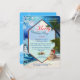 Uma cena de Natal de inverno Azul e uma cena de feriado de praia com uma estrutura geométrica vermelha-verde para o seu cartão de festas de Natal são fáceis de personalizar com a sua redação, fonte, cor da fonte, forma de papel e escolha de doze tipos de papel.