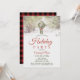 Celebrar a temporada de Férias com nossos Convites de festas de Natal de Férias Corporativas no Cavalo Branco em tons modernos de verde, vermelho, preto e xadrez. Personalize o evento especial para criar um convite que certamente impressionará seus convidados. Design apresenta um cavalo branco vestindo uma coroa de pinheiros e uma floresta coberta de neve. A parte de trás é um padrão de xadrez vermelha de coordenação.
