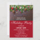Companhia festiva anual de férias convite de festas de Natal com ramos de árvores de Natal, cones de pinho e decoração de ouro e vermelho em madeira escura. Os detalhes da festa são escritos em branco com um fundo vermelho brilhante de marrom. Este convite do país russo é perfeito para uma festa de Natal/ Natal/ inverno!