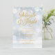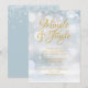Flocos de neve suaves caem sobre um fundo mágico de inverno neste convite de festa de fim de ano sofisticado. Criado por Thisisnotme©