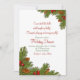 O texto sobre este pínus bughs, cones de pínus e groselhas de Natal (Xmas), o convite de festas tradicional de janto de férias, é perfeitamente personalizável. A citação diz: "Venha para os corredores com ramos de Holly. Trompetes tocando e todo mundo alegre." As cores são vermelho festivo, verde e branco com tosse de pinheiro, cones de pinheiro e bagas holly vermelhas. Embora atualmente personalizado como um convite de festas de janto de férias, isso também poderia ser usado como convite de festas de aniversário, convite para festas de feriado corporativo, convite para casamento, chá de panela, convite para arrecadação de fundos de caridade ou qualquer outro evento de feriado que você esteja planejando.