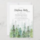 Cartão de convite de festas de natal de inverno da floresta de aquarelas, com coníferas e tipografia tradicional.