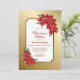 Um convite de festas de Natal bordado com poinsetos vermelhos e brancos vibrantes. Adequado para comemorações de Natal de família e de negócios.