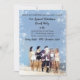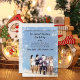 Seus hóspedes vão gostar muito deste convite de festas de Natal. Foto de um braço alegre do Papai Noel caminhando de braço na praia com mulheres em trajes de banho. No verso, uma foto branca e negra de Papais noeis com seus pés no oceano.