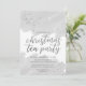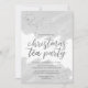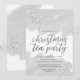 Este cartão de convite de festas de chá de natal prateado é perfeito para um evento elegante. O design apresenta pincéis de cor de água de cinza macia com um toque de faíscas prateadas falsas e texto de folha prateada falsa. Nota: Este design não apresenta brilho prateado real nem folha de alumínio. É um gráfico de alta qualidade feito para parecer um martelo prateado.