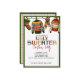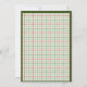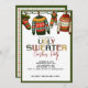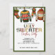 A frente do convite de festas de suéter de Natal feio apresenta um design festivo e divertido. Por cima, suéteres feios, luvas, chapéus e meias, inspirados na safra, penduram-se a partir de uma linha de roupa, criando um efeito de granja caprichosa. O texto principal, "Festa de Natal", é exibido com ousadia em uma fonte aconchegante, de camisola estilo kit, enfatizando o tema. As cores são quentes e vibrantes, com vermelhos, verdes e pastéis macios destacando as ilustrações. A parte de trás do convite é totalmente coberta por um padrão clássico de xadrez verde e vermelho de Natal, dando à design uma sensação confortável e tradicional de feriado.
