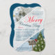 Um fundo de neve azul-verde-lacrimogêneo com árvore festiva e cabeça de Papai noel vermelha brilhante