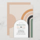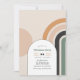 Convide os convidados a comemorar as férias em estilo com este convite de festas de Natal retrô-arco-íris. Apresentando uma paleta colorida quente do século médio de laranja queimada, verde-sábio e creme, o design de arco geométrico ousado adiciona um toque lúdico, mas sofisticado. Perfeito para encontros de feriados boêmicos, modernos e minimalistas, este convite totalmente personalizável facilita a apresentação dos seus detalhes de eventos com um talento festivo único.