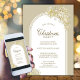Espalhe a alegria da temporada de festas convidando seus amigos e família para sua festa de Natal com este elegante convite para ouro. O convite apresenta um arco branco onde você pode personalizar o texto para capturar a essência do seu evento. O arco é adorado com flocos de neve de ouro na moda, acrescentando um toque de cinza e refletindo o charme de uma noite de inverno nevada. O esquema da cor do ouro cria uma atmosfera luxuosa, enquanto o arco branco nevado complementa qualquer decoração de Natal. Você pode personalizar o texto dentro da arca para incluir todos os detalhes essenciais da parte, como o local, a data e a hora, para garantir que seus convidados cheguem ao local e hora certos. Adicione a sua imagem favorita de si mesmo, da família, ou de você e de sua outra significante ao reverso do convite de festas de Natal para torná-lo um gesto verdadeiramente pessoal e guardar seus convidados. Com este convite maravilhoso, reúna seus entes queridos, colegas e amigos para uma comemoração memorável e alegre de Natal.