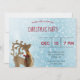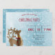 A época natalícia é em cima de nós e que melhor hora de comemorar com amigos e família? Esta rena em um convite de festas do país das maravilhas do inverno é divertimento para todas as idades. Se você está tendo uma festa natalícia para crianças ou uma reunião da família, será amada por tudo. Na parte dianteira há um entalhe de madeira de uma rena que seja decked para fora em um lenço e em bagas do azevinho. Isto está em um fundo nevado azul. O texto está no vermelho e nas cinzas. Nosso desenhista selecionou uma família das pias batismais que são divertimento mas fáceis de ler.