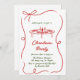 Celebre a temporada em estilo com este clássico convite de festas de Natal com tipografia festiva vermelha e verde e uma charmosa ilustração de mesa de buffet. Um quadro vermelho brilhante de fita adiciona um toque alegre enquanto deixa muito espaço para seus detalhes de eventos personalizados. Perfeito para encontros de férias, festas de escritório ou comemorações familiares, este convite dá o tom para uma noite calorosa e acolhedora.