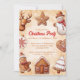 Comemore em estilo com este convite de festas de biscoitos giros. Perfeito para decorar seu Natal ou festa de férias. Ilustrações cheias de aquarelas com figuras de biscoitos de pão de gengibre (uma árvore de Natal, homem com chapéu, boneco de neve, estrela, coração, renas, casa e bola de Natal) em um fundo castanho e branco com flocos de neve. Brincadeira e encantadora, é a maneira perfeita de dar o tom para uma celebração divertida e desejar aos seus entes queridos um Feliz Natal.