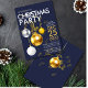 Convite de festas de Natal do ornamento Dourado de brilho azul moderno. Personalize todos os campos de texto para trazer um toque especial ao seu evento.