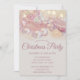 Celebrar a temporada de Férias com nossos Convites de festas de Natal de Ornamento de Faíscas Rosa. Personalize o seu evento especial para criar um tipo de manutenção que você certamente apreciará nos próximos anos. Projetado com um ornamento floral cor-de-rosa com pérolas sobre fundo cintilante de neve.