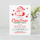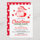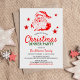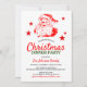 Convite de festas de natal contemporâneo com um fundo branco clássico, um salão de anã vermelho e branco, estrelas para adicionar esse toque mágico e um modelo do janto de Natal moderno que é fácil de personalizar.